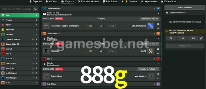 A aposta 888g oferece aos jogadores a experiência mais conveniente de apostas em eSports!